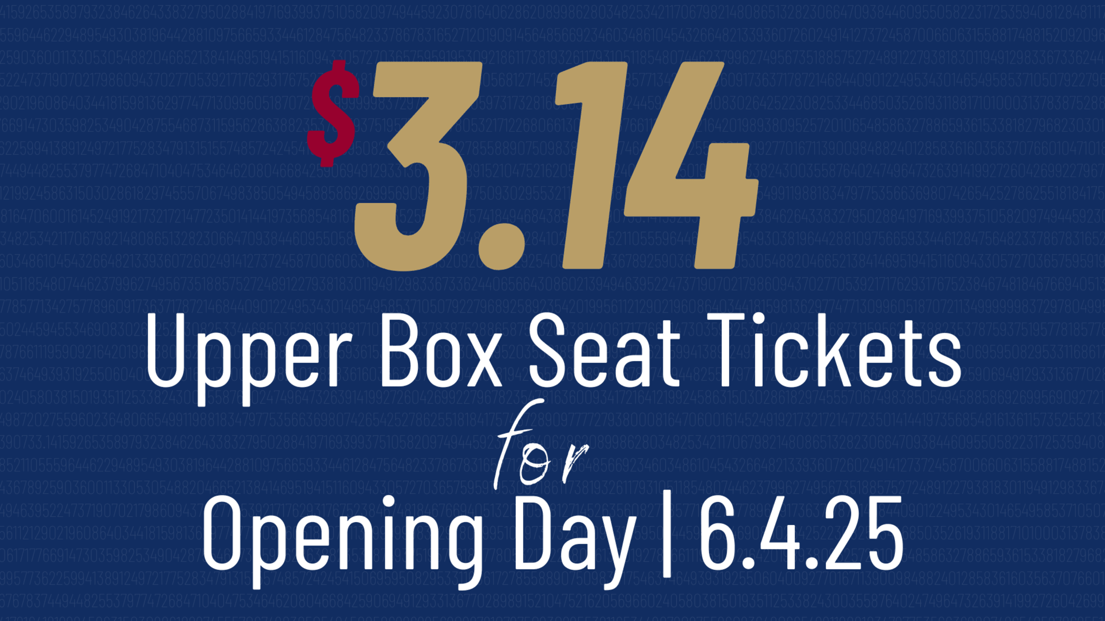 Enjoy Upper Box Tickets for our 2025 Opening Day for just $3.14!