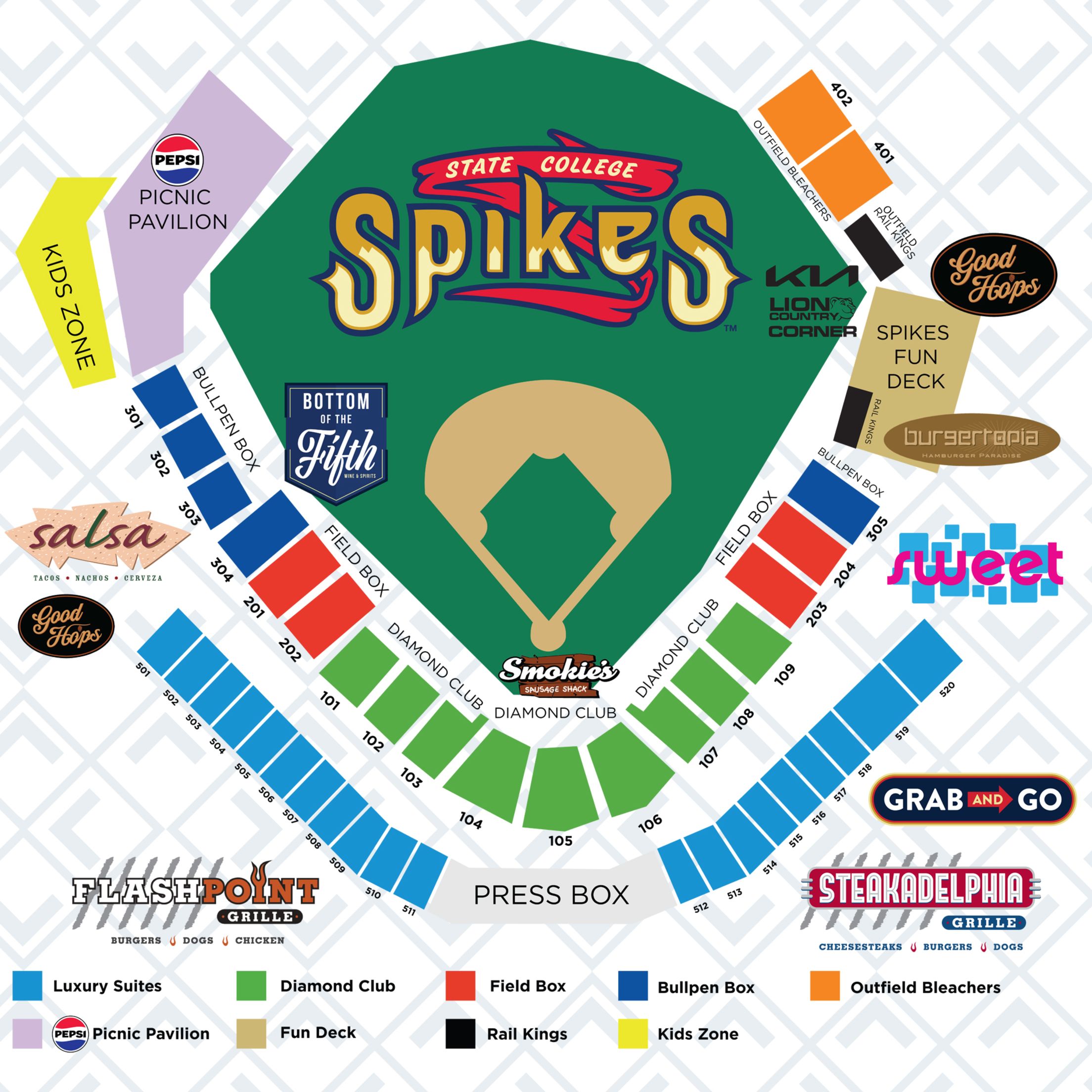 Spikes seats can be purchased right from your computer or phone! See the array of options, including Season Tickets, nights in the Luxury Suite Level and Pepsi Picnic Pavilion and more group and hospitality opportunities below! Individual seats go on sale soon - see the see the upcoming schedule by clicking the "Pick Your Game Now" button below, and when single-game tickets are on sale, you can click "Buy Tickets" to buy and download! You can also call the Spikes Box Office at (814) 272-1711 or visit in person from 9 a.m. to 5 p.m., Monday through Friday at the Spikes Team Office!