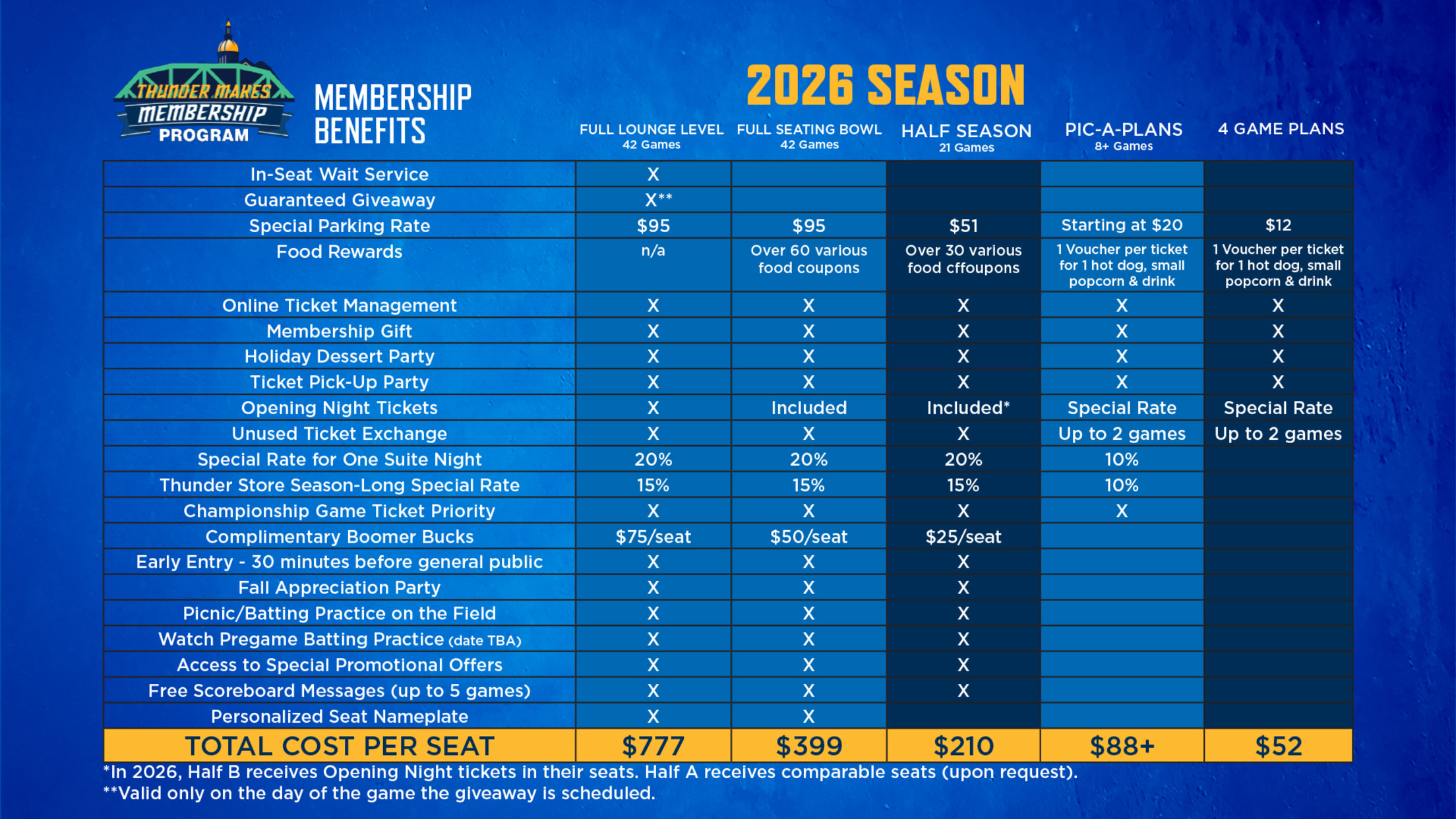 Can’t make it to every Thunder game but still want many of the same great benefits? Become a half-season member and enjoy great perks like a special rate on parking, concessions, and Thunder Store, exclusive member-only events, and early entry on game days!